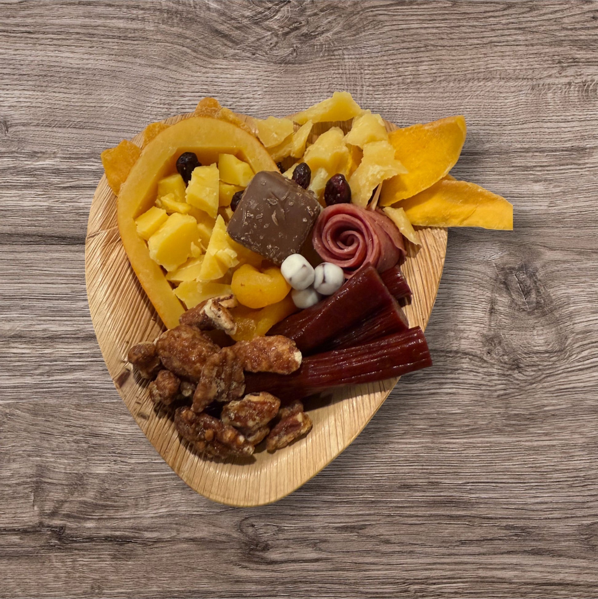 Our heart-shaped charcuterie board for 2-4 people is the perfect way to share love and flavor. Featuring a selection of premium artisanal meats, creamy local cheeses, handcrafted small-batch jams, dried fruits, and crisp crostini, this beautifully arranged board offers a mix of sweet, savory, and tangy delights. Ideal for an intimate date night, celebrating a special occasion, or simply treating yourself and a loved one to a memorable indulgence.